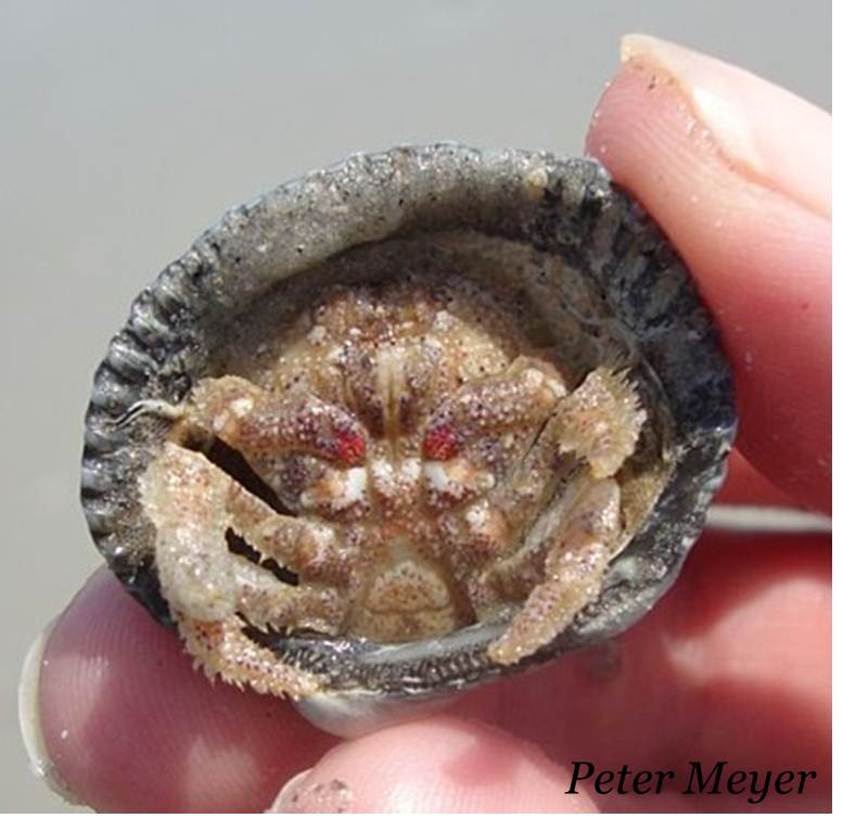 What's really neat about these guys is they have modified 4th and 5th walking legs (kind of like how swimming crabs have leg modifications) that enable the shellback crabs to hook and almost suction themselves into the shell halves!